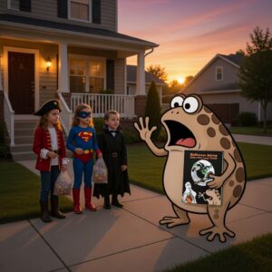 It’s that time of year. Your child is dressed up to go trick or treating but encounters a very large toad. This one talks! You and your child will be delighted and amused by the cautious toad’s unusual advice.